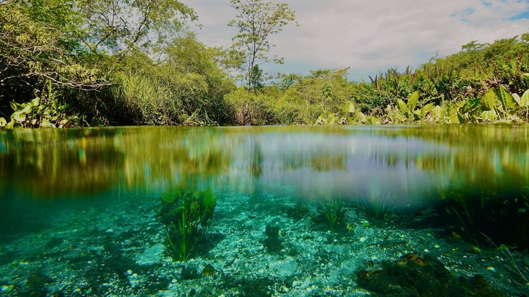 Visto de fora, a transparência é tão intensa que tudo que flutua sobre a água dá a impressão de estar flutuando no ar, a sensação é indescritível.
